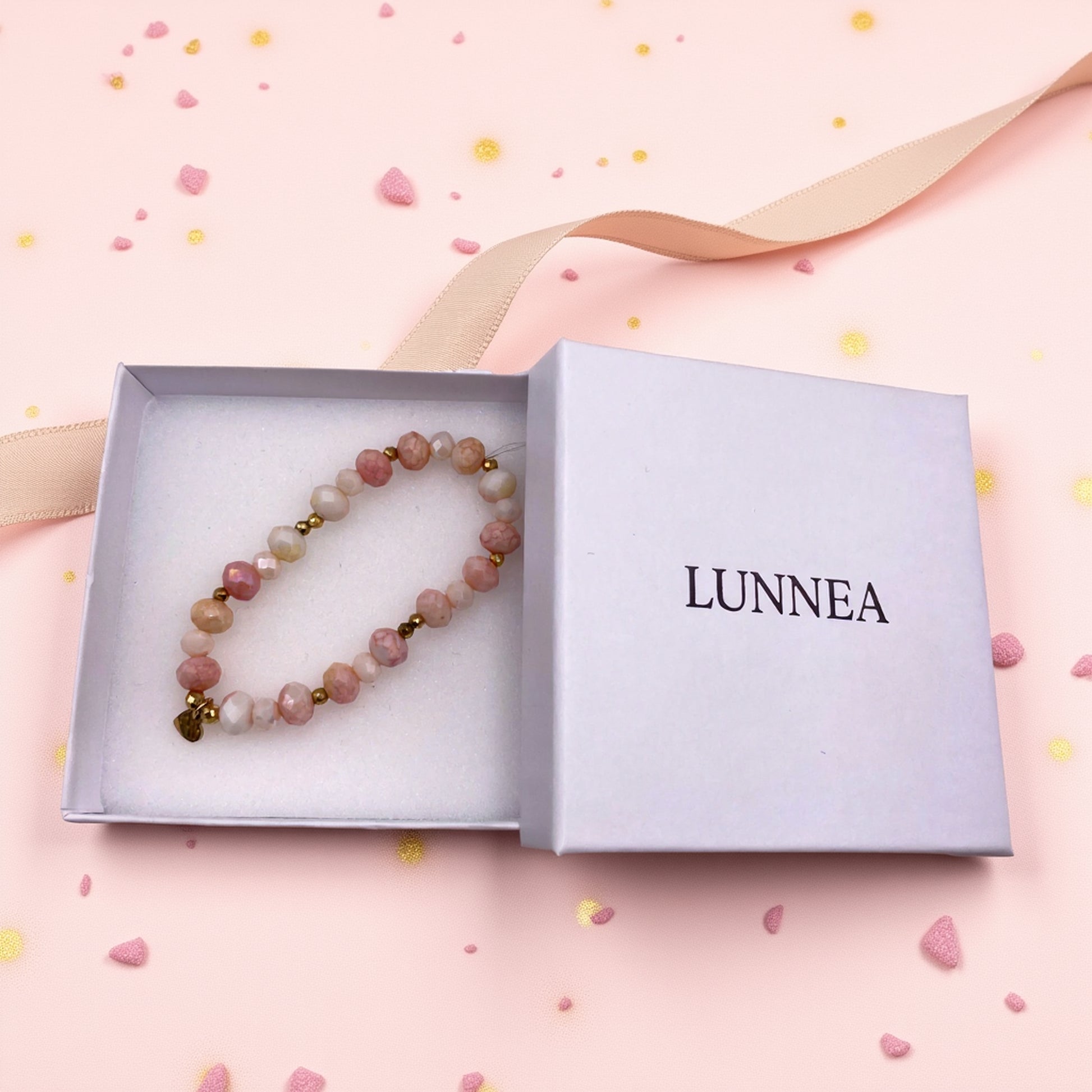 Zaprojektowana z myślą o kobietach, które kochają subtelną elegancję i detale z duszą – ta bransoletka łączy w sobie ciepło pastelowych barw i blask złota. Idealna do codziennych stylizacji w stylu soft romantic, ale z powodzeniem możesz założyć ją także do wieczorowej sukienki.